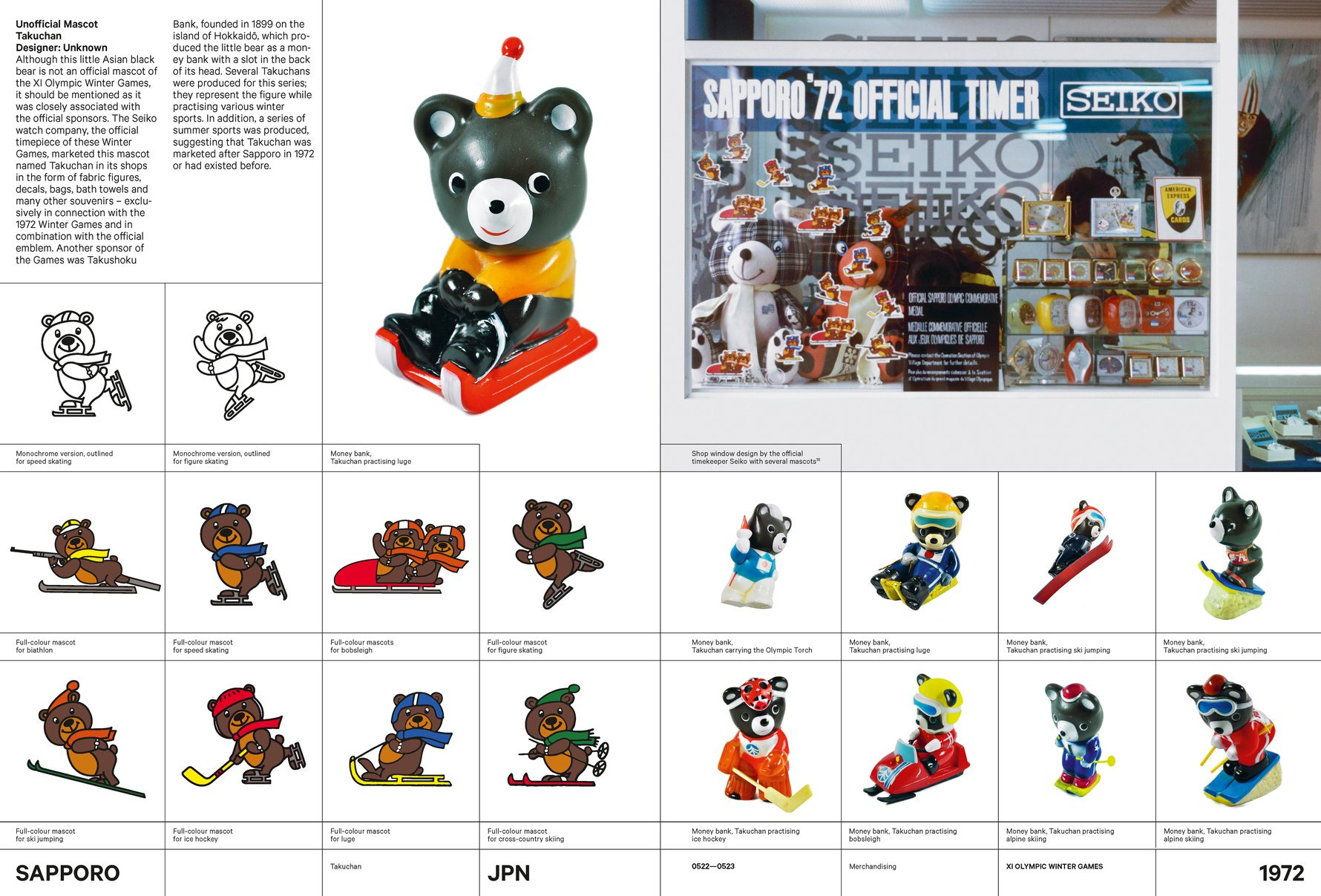 Trash panda. I actually quite like this guy, but he’s very poorly documented. Much like Sapporo, they designed versions of him for multiple events.